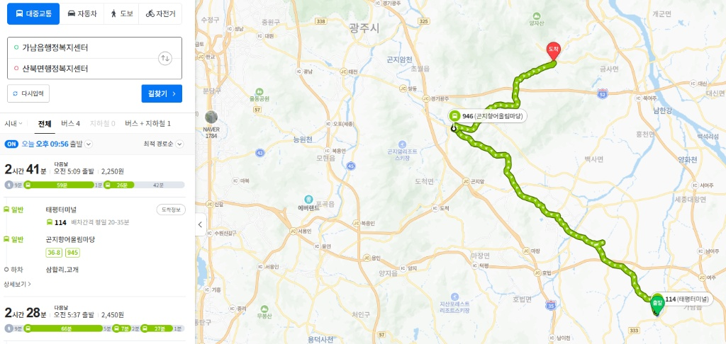 대중교통 이용 시: 배차 간격이 긴 버스와 환승 대기 시간을 포함하면 편도 2~3시간이 소요되기도 합니다.